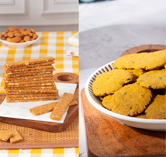 Almond Biscotti Nut Based 200g + Makhana Kalonji Mathri 150g
