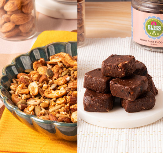 Vegan Dark Chocolate Burfee 150g + Omega 3 Nuts & Seeds Trail Mix 250g