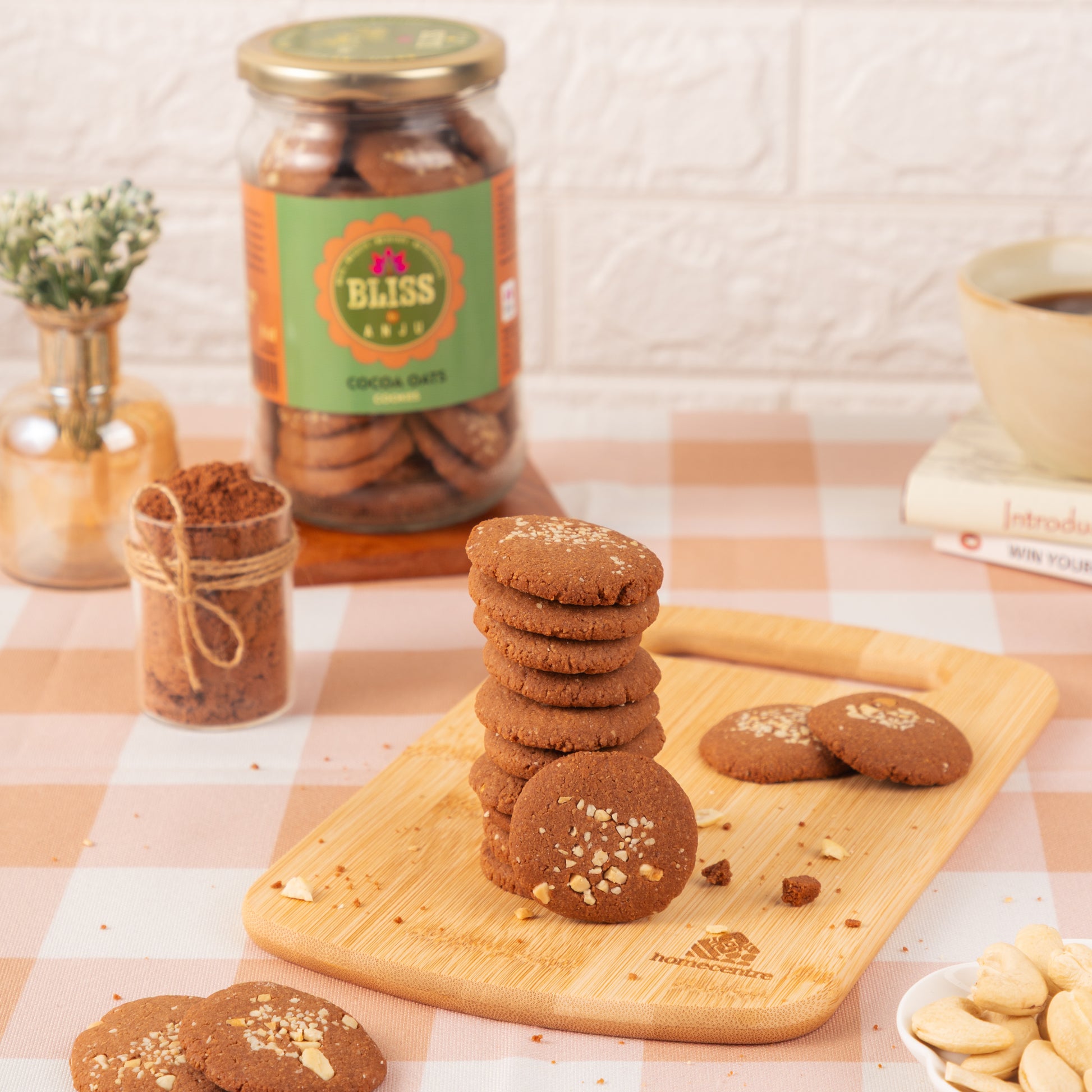 Cocoa oats biscuits are a delicious and nutritious treat that combines the richness of cocoa, the wholesomeness of oats, and the goodness of traditional Indian ingredients.